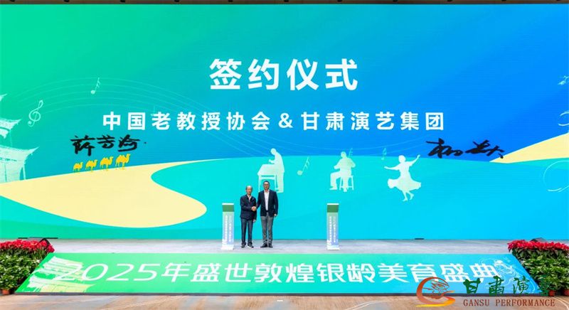 在全体嘉宾见证下,中国老教授协会与甘肃演艺集团签署了战略合作协议,致力于深化敦煌文化艺术资源的活化利用与银龄美育实践,共建艺术交流新平台。活动尾声,现场大屏幕展示了本届盛典“百年风范·中国文化名家书画展”的优秀征集作品。