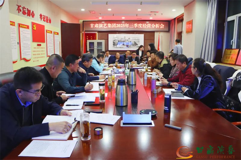 11月14日,甘肃演艺集团召开2025年第三季度生产经营分析会。集团党委书记、董事长陈其银出席会议并讲话,党委副书记、总经理杨焱主持会议并对生产经营进行了总结分析和安排部署。党委副书记、工会主席张国伟,党委委员、副总经理、艺术总监刘宁,副总经理、秦腔艺术剧院院长马勇,党委委员、副总经理刘顺芳,党委委员、纪委书记庞一龙参加会议并分别进行了分析点评。