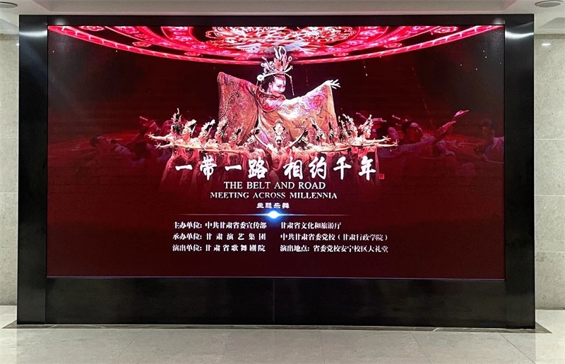 10月12日晚,由中共甘肃省委宣传部、甘肃省文化和旅游厅主办,甘肃演艺集团、中共甘肃省委党校(甘肃行政学院)承办的2023我们的中国梦文化进万家“礼赞二十大 谱写新篇章”省级政府购买优秀传统文化、高雅艺术“进校园”演出在省委党校安宁校区大礼堂拉开帷幕,甘肃演艺集团歌舞剧院携主题乐舞《相约千年》惊艳亮相。