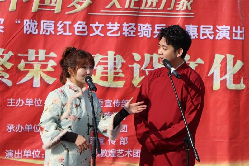 2024年1月6日至7日,由中共甘肃省委宣传部、甘肃省文化和旅游厅主办,甘肃演艺集团、中共兰州市委宣传部承办,甘肃演艺集团敦煌艺术团演出的“2024我们的中国梦文化进万家暨陇原红色文艺轻骑兵惠民演出”,在兰州市安宁区培黎广场、二十九家园,七里河区中天健广场、兰州老街,开展为期2天4场的迎春文化惠民演出活动,旨在进一步加快落实省委建设文化强省的战略部署,生动展现陇原儿女锐意进取、团结奋斗的精神风貌,凝聚“奋进新征程、建功新时代”的磅礴力量,力求用丰富多彩的文艺节目把党和政府的关怀传递到百姓心间。