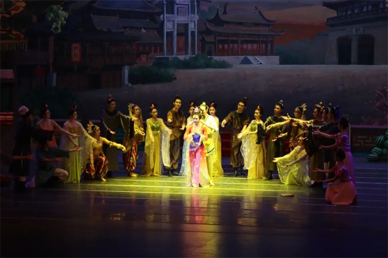 舞剧《丝路花雨》讲述的是古丝绸之路上,善良淳朴的中国父女为救助外国商人,所发生的亲人悲欢离合,友人生死相助,患难与共的感人故事,以其卓越艺术水准和高度政治情怀,在国内外顶尖级舞台千余场次华丽绽放。作为甘肃演艺集团“新春逐梦”2024新年演出季系列活动的重磅演出,演员们怀着对金城人民的新年美好祝愿忘我投入演出,精彩纷呈的表演得到台下观众热烈反响,谢幕环节更是将气氛推向最高潮,台上台下形成一片欢乐的海洋,《丝路花雨》2023年最后一场兰州常态化驻场惠民演出也在观众的掌声和欢呼声中完美落下帷幕。